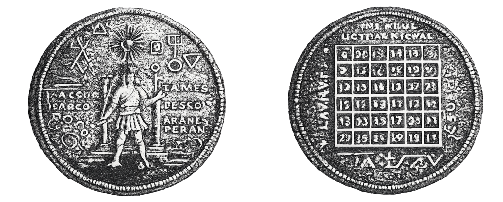 Como vemos na primeira imagem, na parte frontal há uma representação de um rei pisando o leão babilônico; acima dele, a imagem do Sol. No verso do selo encontramos algo conhecido na numerologia e na cosmologia como “o quadrado mágico do Sol”.