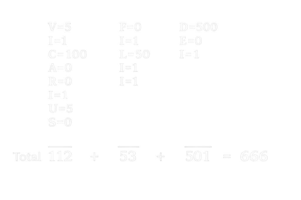 Curiosamente, ao calcular o valor numérico do título Vicarius Filii Dei, chega-se mais uma vez ao número 666.