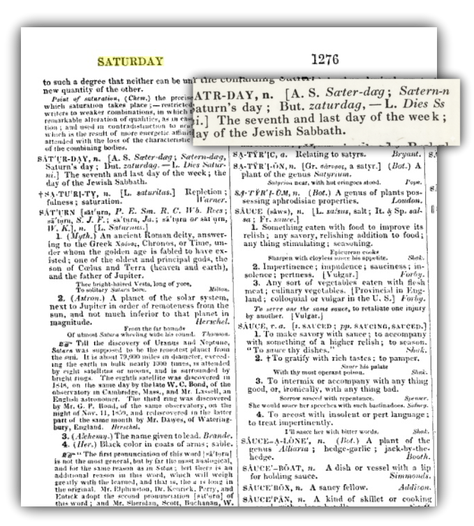 “Sábado: o sétimo e último dia da semana; o dia do sábado judaico”